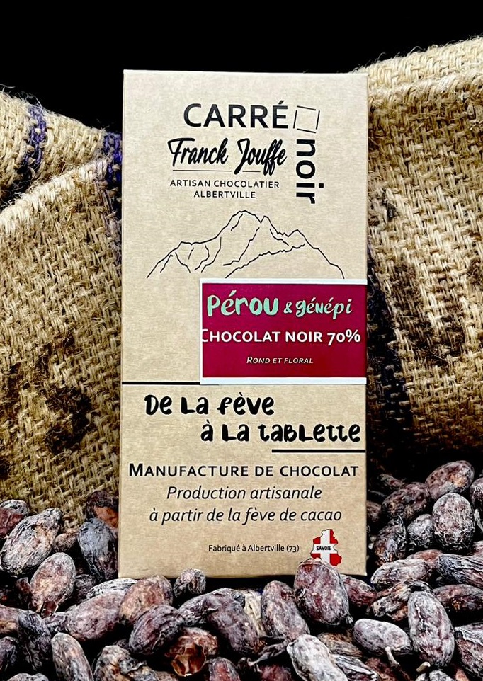 La tablette Pérou & Fleur de génépi 66% séduit par l’alliance audacieuse entre la rondeur du cacao péruvien et la vivacité aromatique du génépi. Laissez le chocolat se réchauffer quelques instants en bouche : les notes fruitées et légèrement torréfiées du cacao s’épanouissent avant de laisser place à la fraîcheur végétale et montagnarde du génépi, aux accents d’herbes sauvages et de menthe douce. À déguster seule ou avec un whisky tourbé ou une infusion de montagne pour en révéler la profondeur.