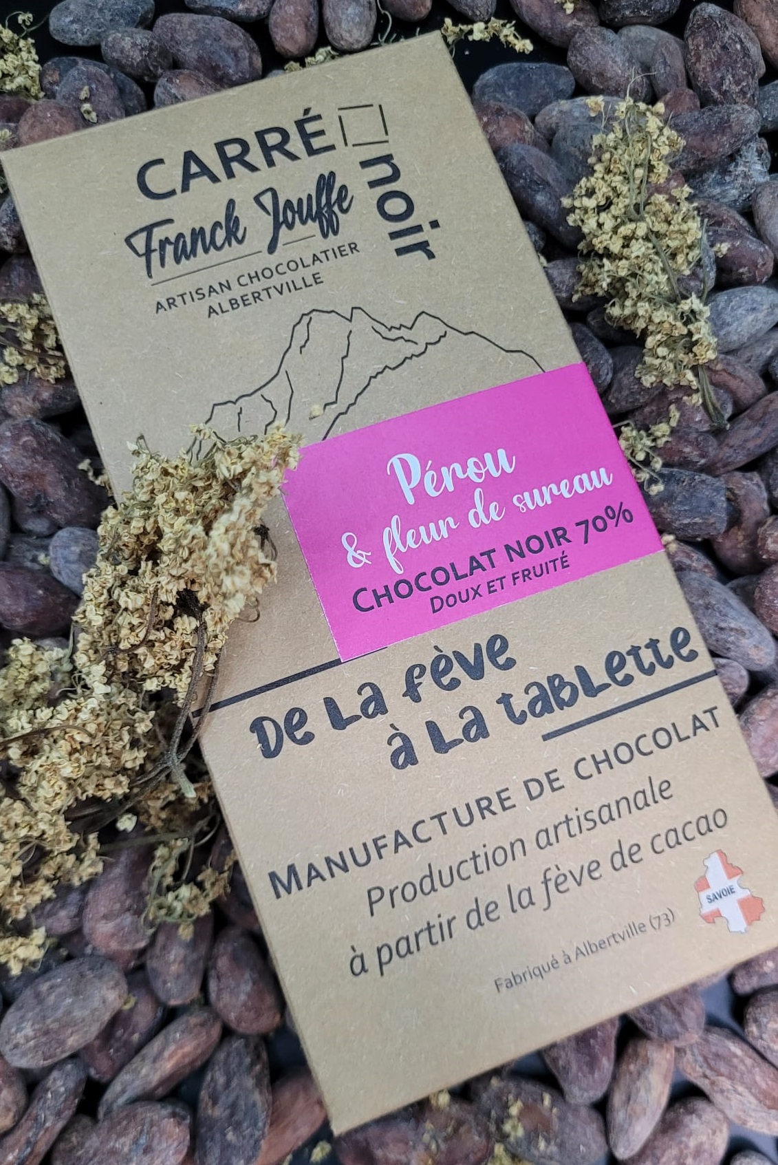 La tablette Pérou & Fleur de sureau 66% dévoile une harmonie délicate entre la richesse aromatique du cacao péruvien et la subtilité florale du sureau. En bouche, les notes fruitées et légèrement épicées du cacao s’entrelacent avec la douceur parfumée du sureau, évoquant le miel et les fleurs blanches. Laissez-la fondre lentement pour apprécier l’évolution de ses arômes, particulièrement mise en valeur avec un café doux ou un vin blanc moelleux.