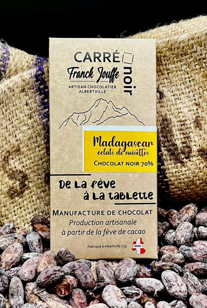 La tablette Madagascar & Éclats de noisette 70% révèle une rencontre parfaite entre la vivacité aromatique du cacao malgache et la gourmandise croquante des noisettes torréfiées. En bouche, les notes acidulées et fruitées typiques de Madagascar s’allient à la rondeur pralinée des éclats de noisette, créant un jeu de textures à la fois fondant et croustillant. À déguster lentement, seule ou accompagnée d’un café doux ou d’un vin rouge aux notes de fruits rouges.